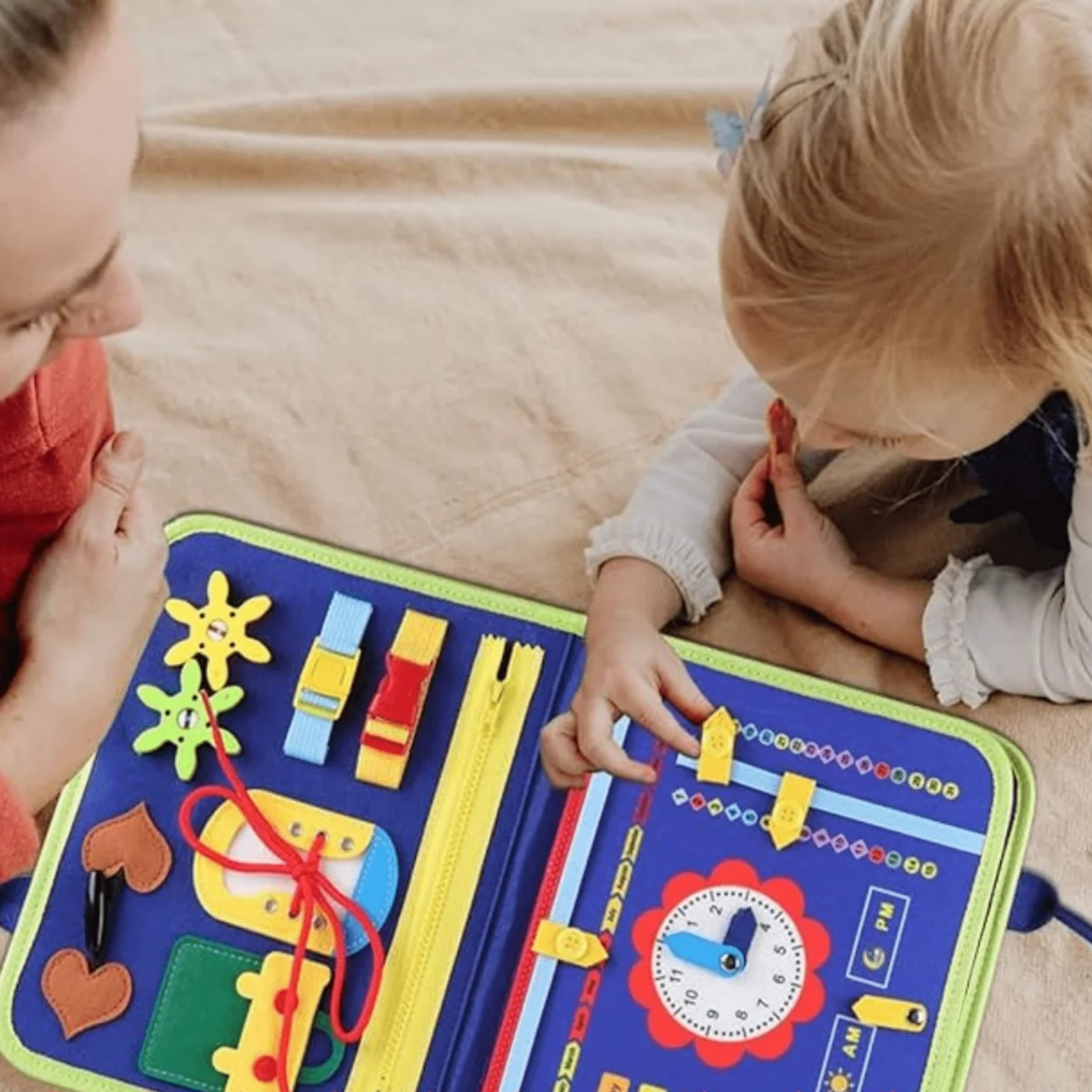 Not all toys keep kids engaged while teaching real-life skills. The Montessori Busy Board combines hands on activities like zippers, buckles, and buttons with fine motor development, concentration, and independent play screen-free and guilt-free.